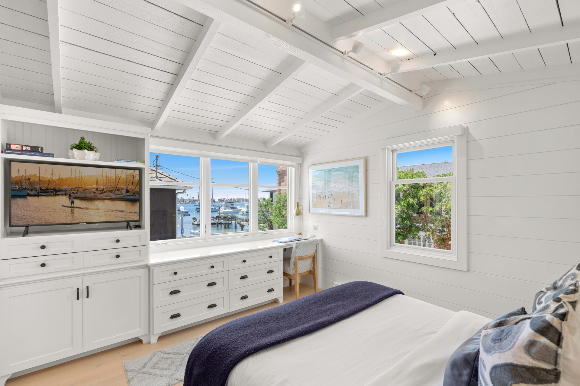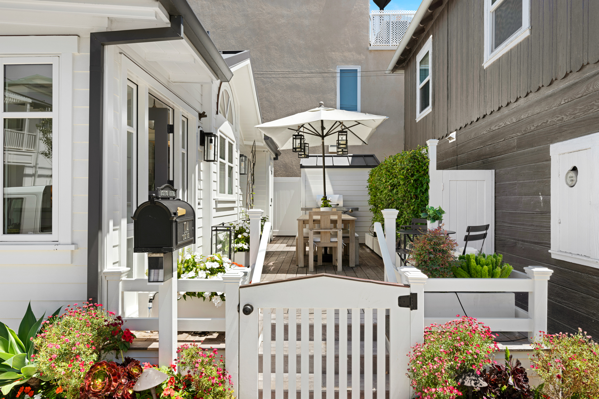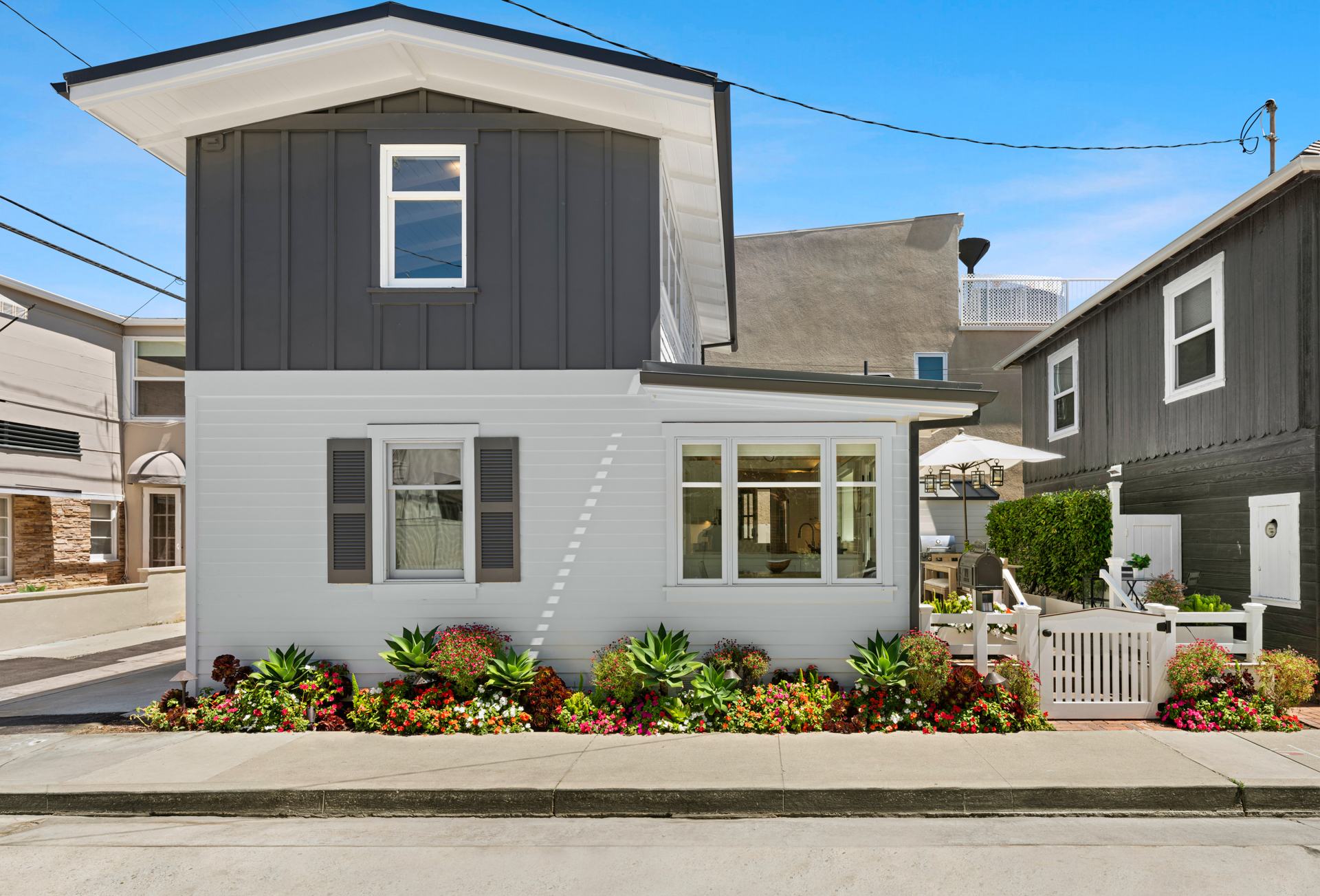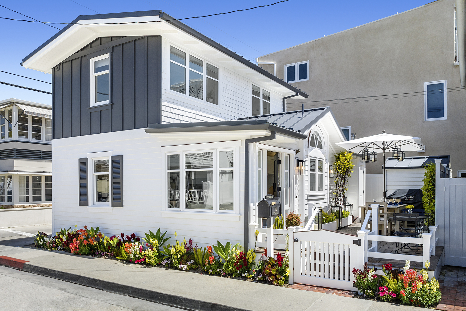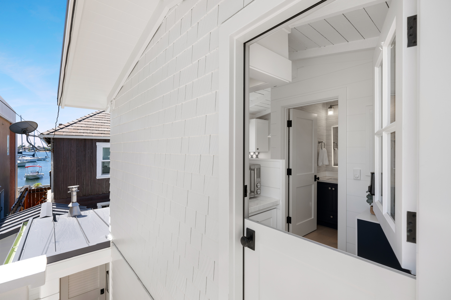 Once-in-a-lifetime opportunity to purchase a sensational home, just steps from the South Bayfront, with a rare short-term rental license. The gorgeous 2 bedroom, 2 bath home has been remodeled and upgraded with designer touches inside and out. Two stories, with stunning views of the Newport Harbor, this home has all the conveniences of a contemporary residence while retaining the charm of its original structure, built in 1924. The modern kitchen has an angled farmhouse sink, top-of-the-line appliances including a Wolf range, and fantastic Bay views. Dutch doors open onto the spacious deck, perfect for entertaining with a BBQ and ample seating. Both bedrooms have abundant built-in storage and custom closets. The upstairs bedroom is entered via an exterior staircase, functioning as a private suite with its own kitchenette. Additional amenities include new interior wood paneling, wood floors throughout, and private laundry. Sixteen steps to the sand and conveniently located one block from the quaint village center on Marine Avenue, this charming home is the perfect slice of Balboa Island life.