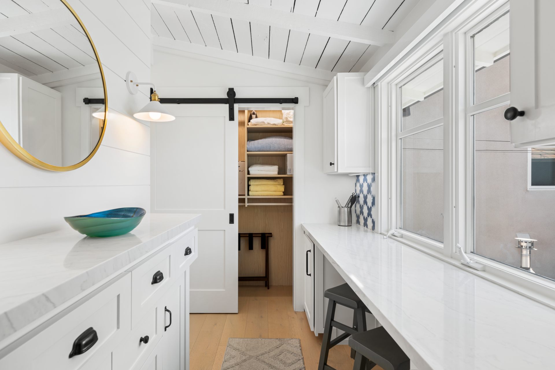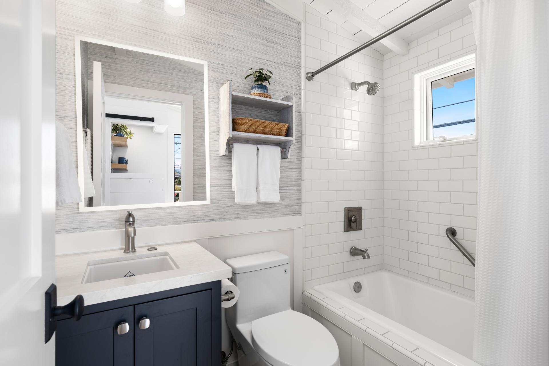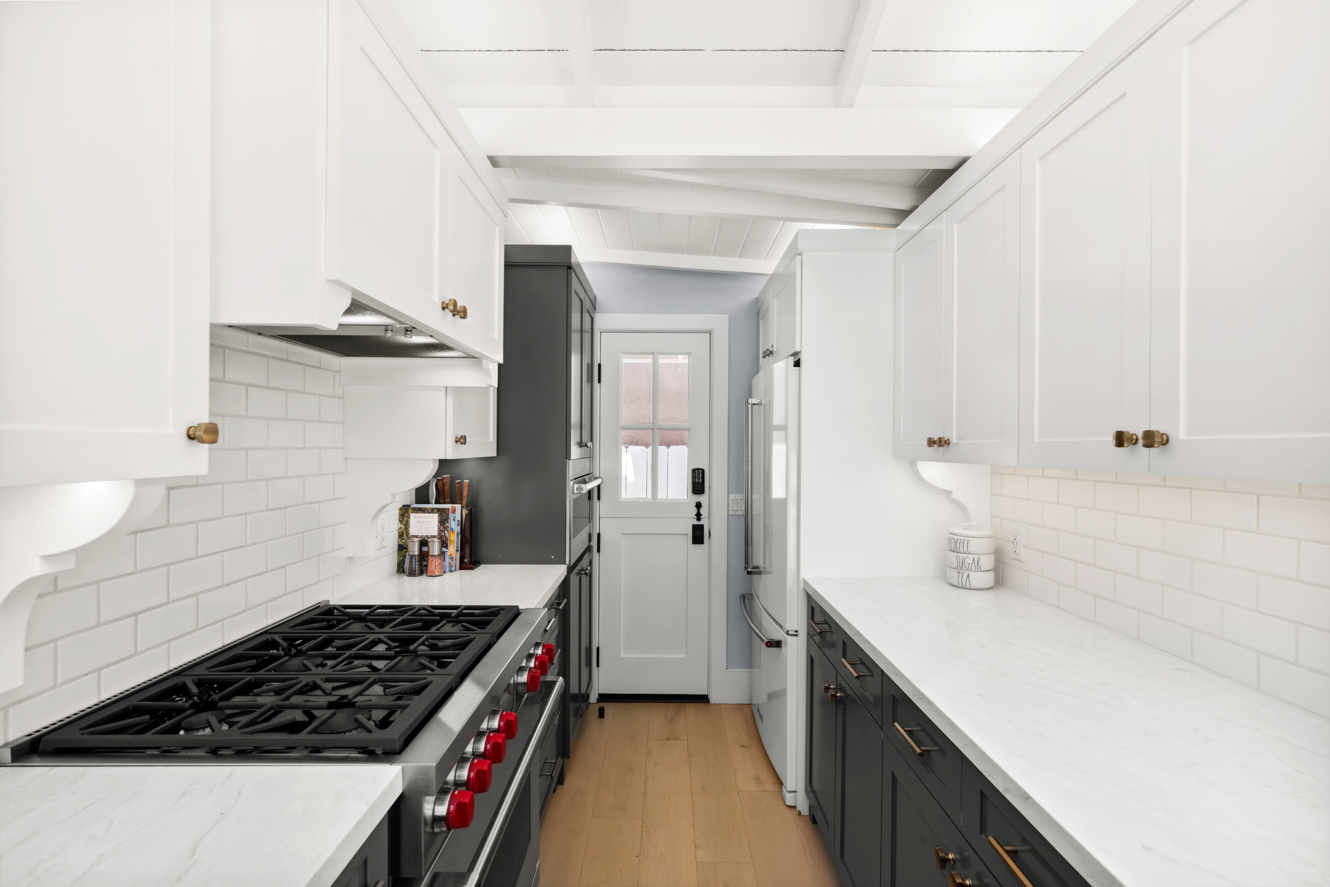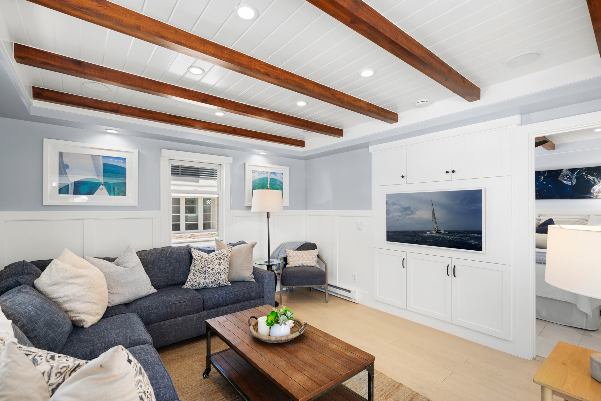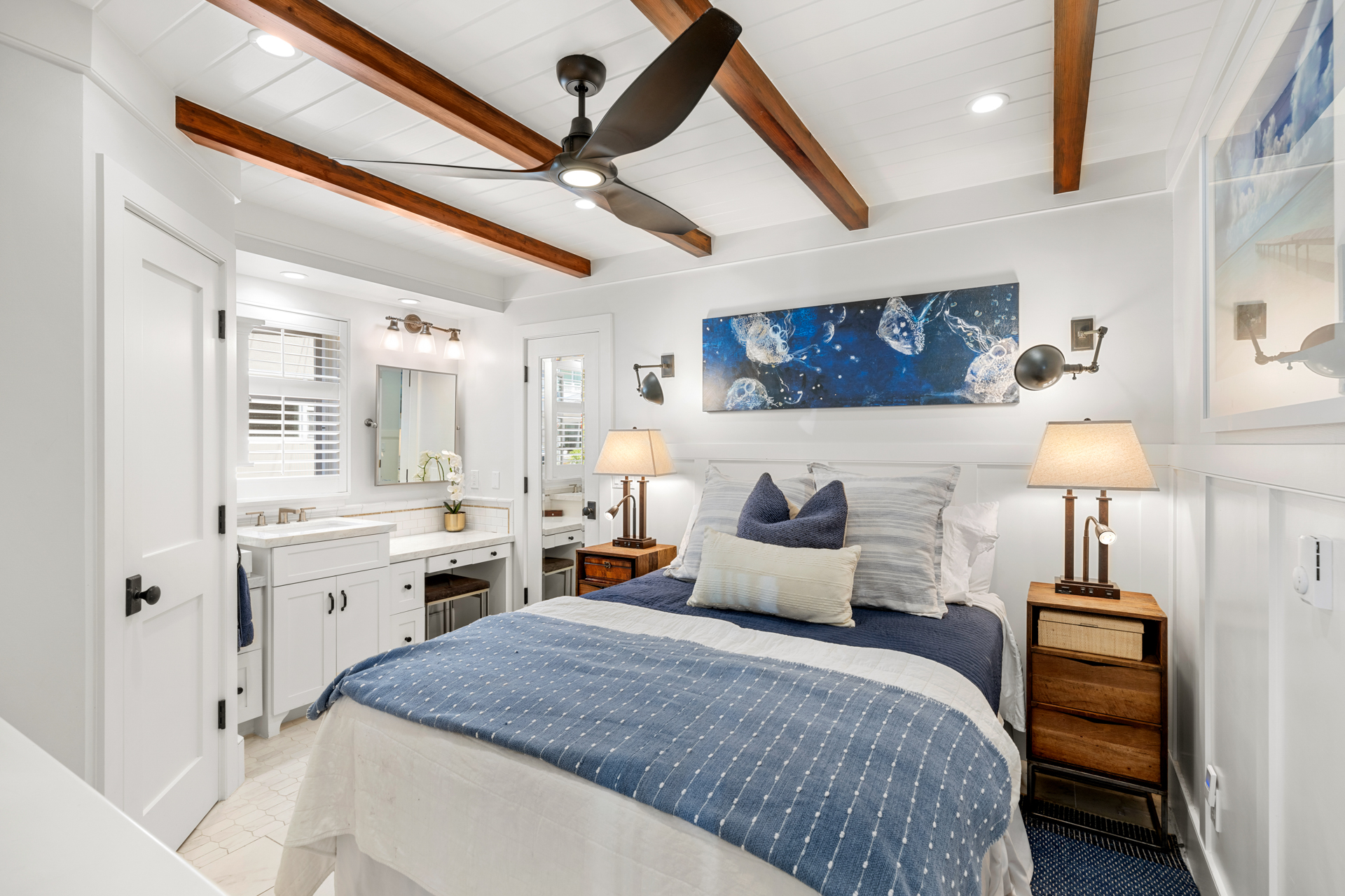 Once-in-a-lifetime opportunity to purchase a sensational home, just steps from the South Bayfront, with a rare short-term rental license. The gorgeous 2 bedroom, 2 bath home has been remodeled and upgraded with designer touches inside and out. Two stories, with stunning views of the Newport Harbor, this home has all the conveniences of a contemporary residence while retaining the charm of its original structure, built in 1924. The modern kitchen has an angled farmhouse sink, top-of-the-line appliances including a Wolf range, and fantastic Bay views. Dutch doors open onto the spacious deck, perfect for entertaining with a BBQ and ample seating. Both bedrooms have abundant built-in storage and custom closets. The upstairs bedroom is entered via an exterior staircase, functioning as a private suite with its own kitchenette. Additional amenities include new interior wood paneling, wood floors throughout, and private laundry. Sixteen steps to the sand and conveniently located one block from the quaint village center on Marine Avenue, this charming home is the perfect slice of Balboa Island life.